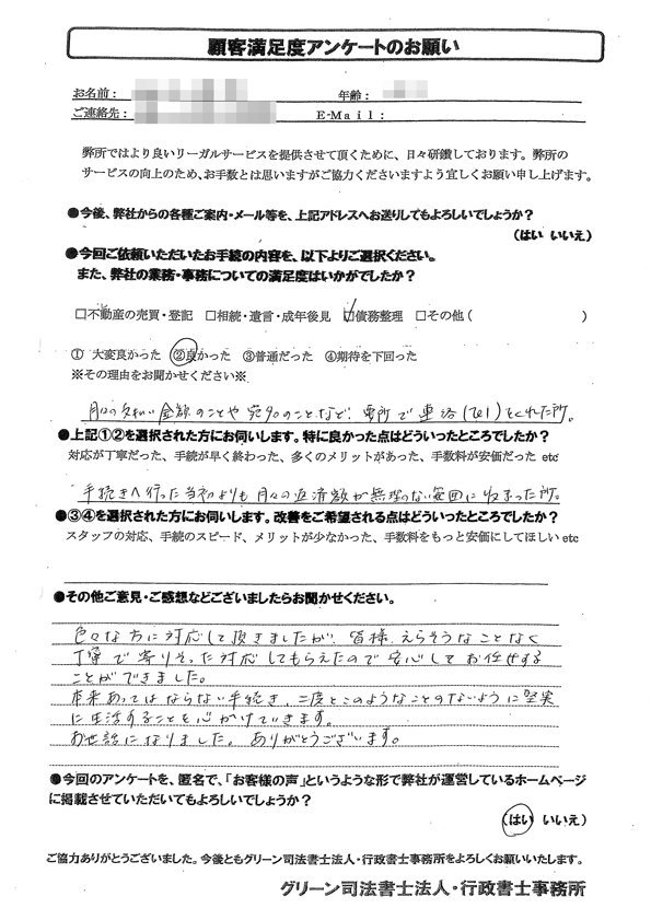 大阪債務整理・自己破産相談センターを運営するグリーン司法書士事務所は、以下のことをいつでもお約束!