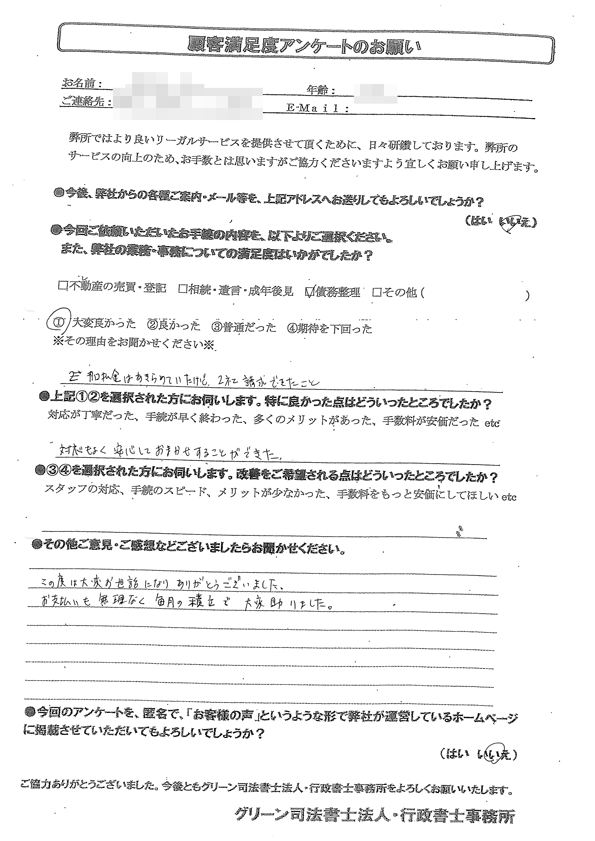 | 減額成功報酬 | 減額報酬は頂きません。 |